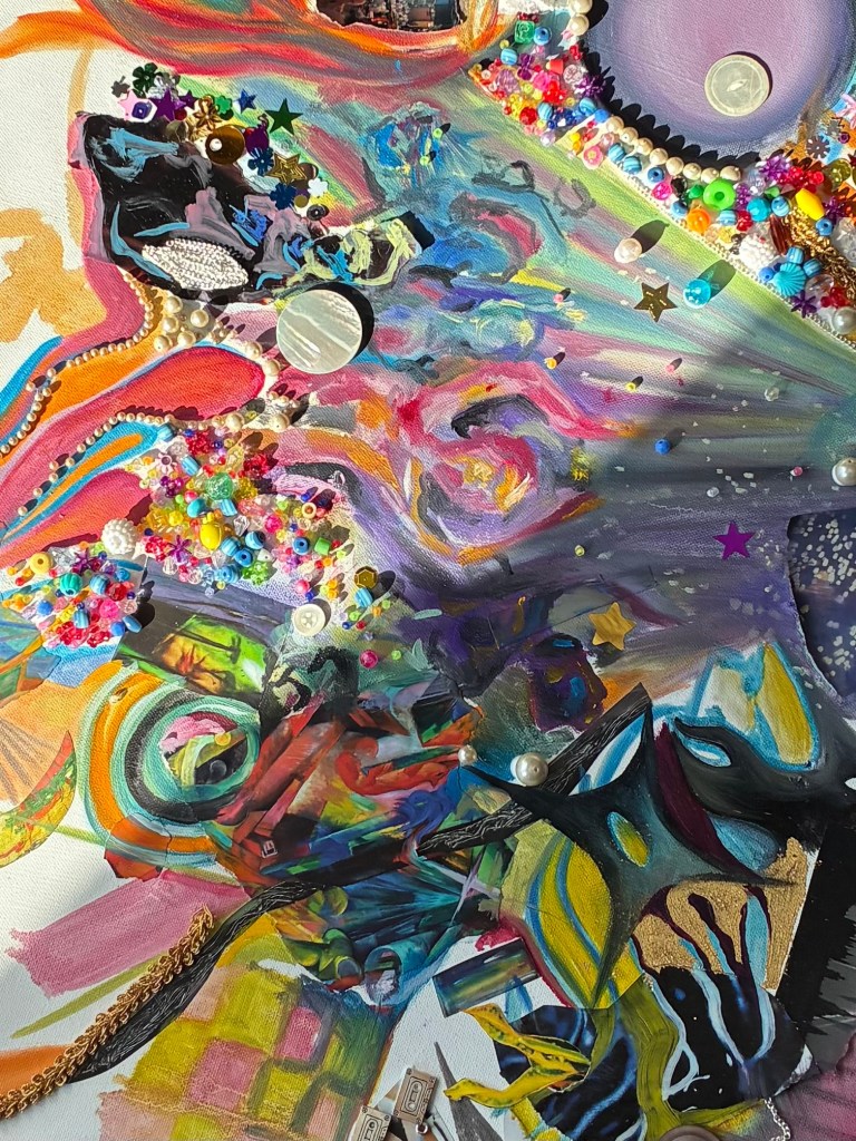 As an artist, I am constantly seeking to explore questions of memory, identity, and one’s relation to those and the world around them. My artistic practice is deeply grounded in spirituality and introspection, and I find that much of my source material, if not from my experiences, comes from the incessant flow of well, me, that lies within me. I am constantly trying to provide my viewers not with entertainment or beauty, but with maximalist sensory experiences that induce the emotions I conjure, sit with, and channel into the piece. I am chasing art that is alive; that eats, inhales, and exhales a universal narrative, something so infinite and unifying that each viewer finds themselves pulled to a staunch memory of their own.